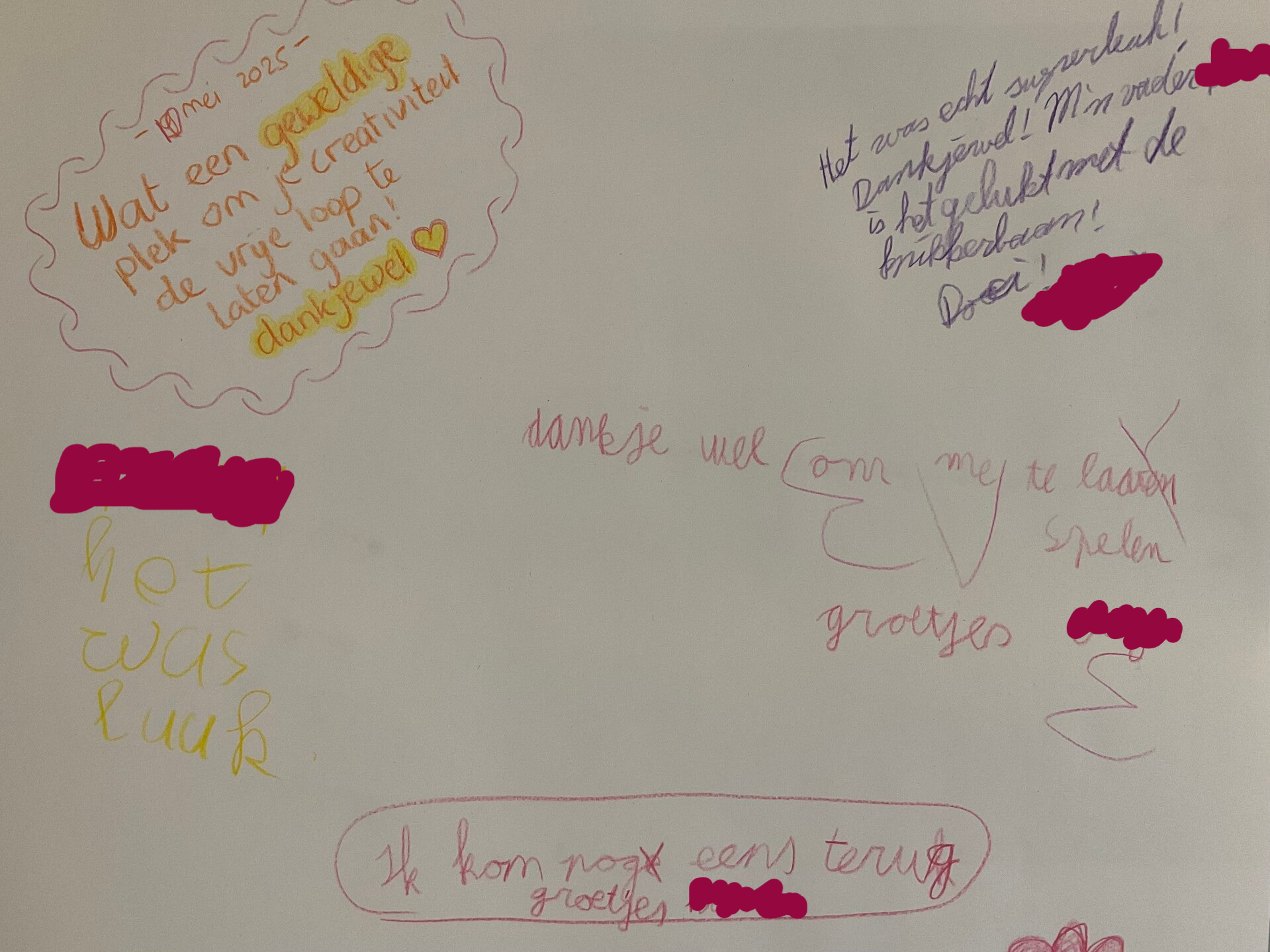 Bedankt voor de superfijne middag. Wat een fijne plek heb je daar. (Kinderfeestje glow-in-the-dark)