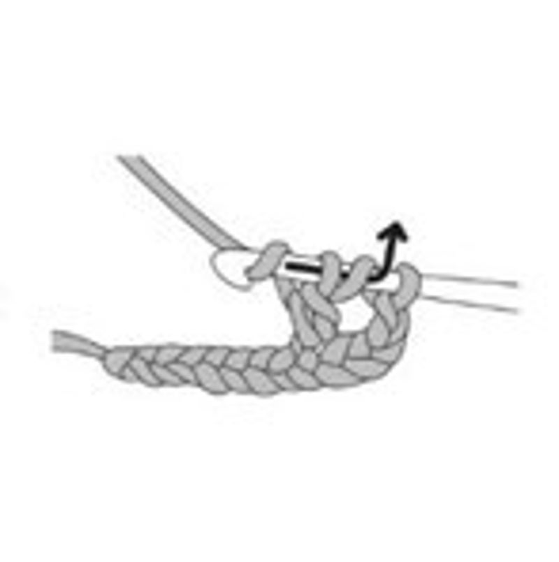 7. Haak de volgende dubbele stokjes als volgt: sla de draad tweemaal om de haaknaald, steek de haaknaald in de eerstvolgende steek en herhaal stap 2, 3, 4 en 5.